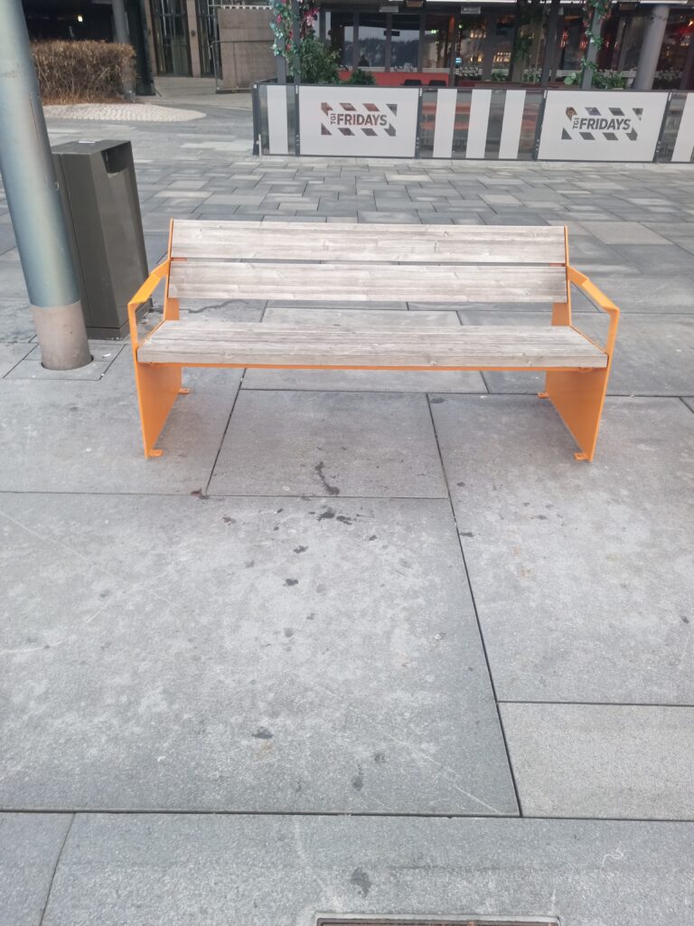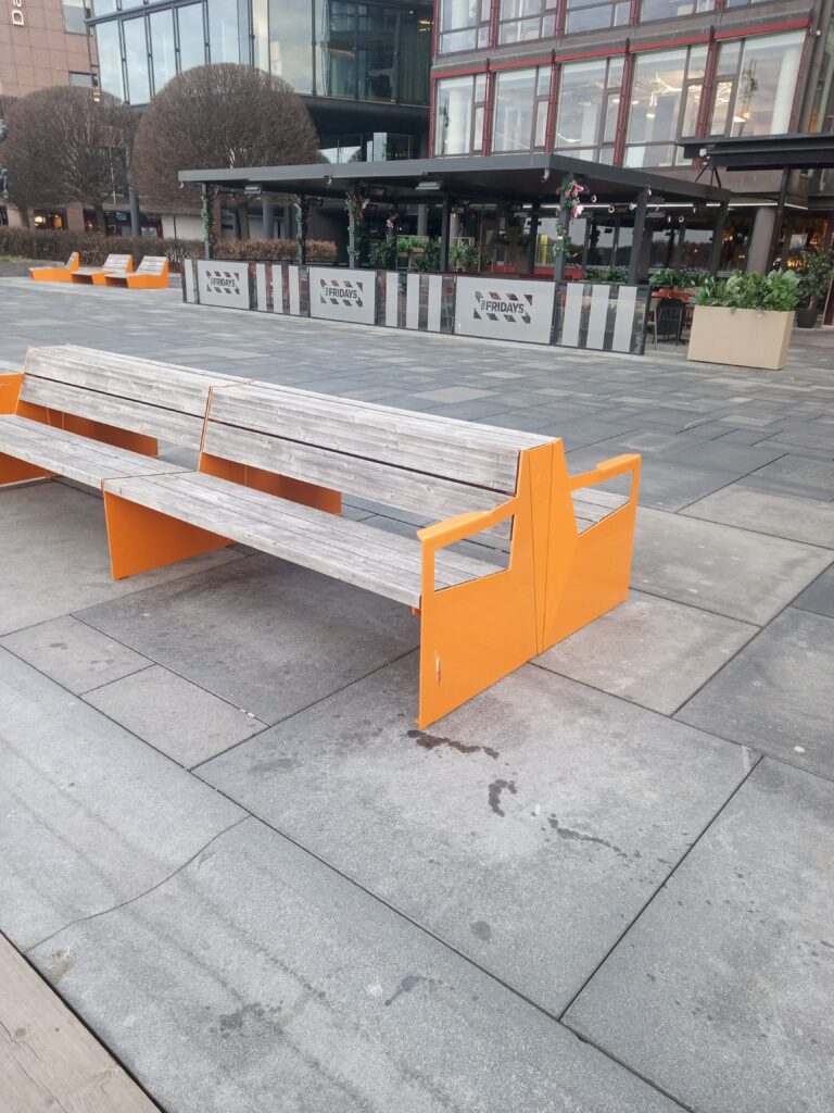 Innenfor den blå avmerkingen på kartet befinner det seg rundt 50 benker.