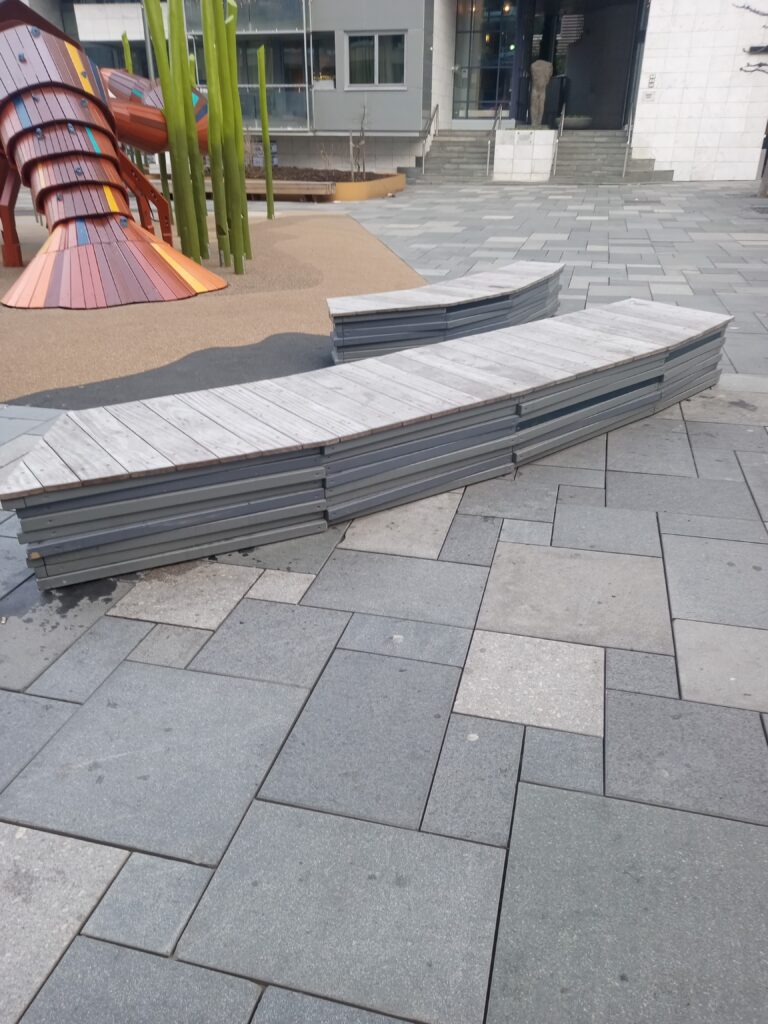 Bryggetorget, Oslo Innenfor den blå-merkete frikanten på kartet befinner det seg rundt 10 benker. De er uten bord